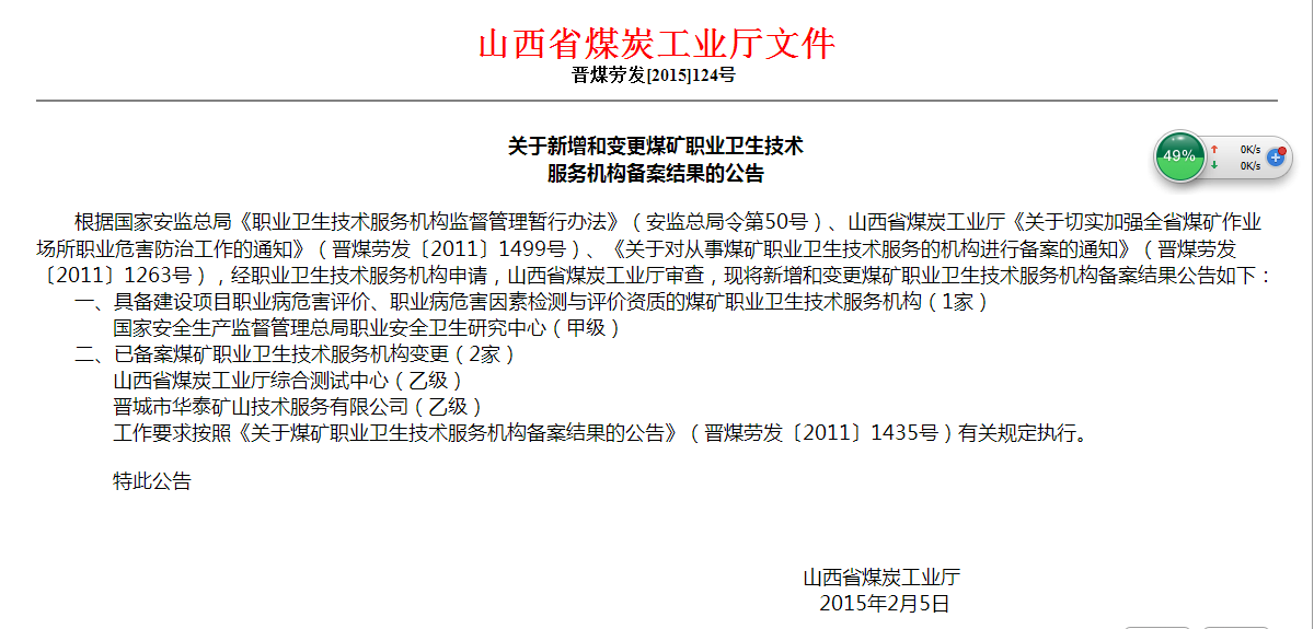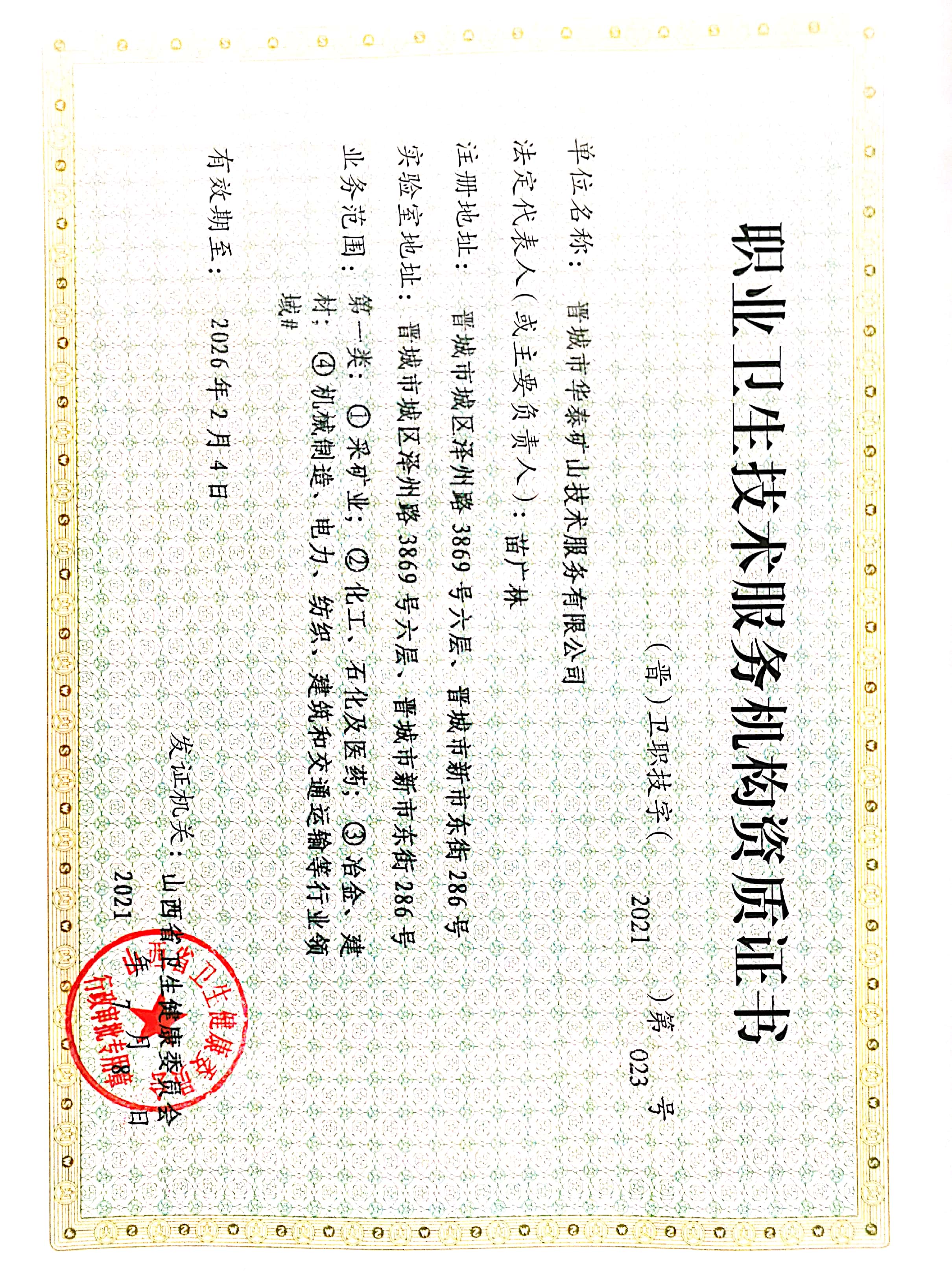 晉城國投華泰科技有限公司(以下簡稱華泰公司)是一家經營性國有企業(yè),注冊資金1000.2萬元(由晉城市華泰礦山技術服務有限公司和晉城澤泰安全技術服務有限公司合并整合組建,國投全資)。公司持有山西省衛(wèi)生健康委員會頒發(fā)的《職業(yè)衛(wèi)生技術服務資質證書》、山西省應急管理局頒發(fā)的《安全評價機構資質證書》和山西省市場監(jiān)督管理局頒發(fā)的《檢驗檢測機構資質認定證書》等資質,設施設備、能力、資質配套齊全。...【詳細信息】